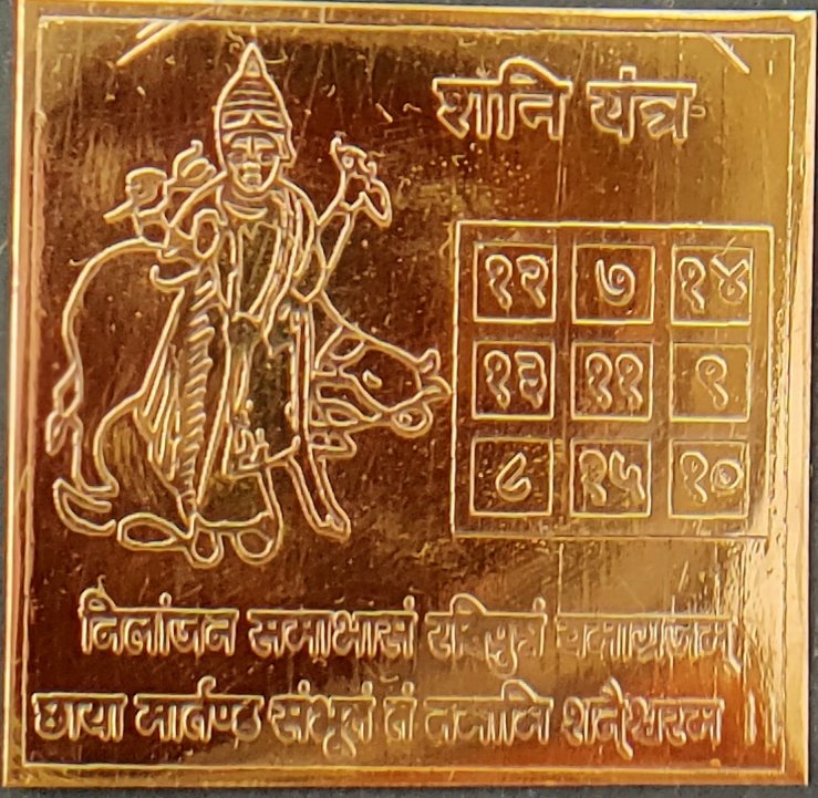 Gravé avec soin sur une plaque en cuivre, le yantra à Saturne (Śani) soulage de la dépression. Mais aussi du désespoir & de la confusion mentale. Il pacifie également les restrictions de Saturne, notamment lors de la période du Sade Sati. Le Śani yantra pacifie les maléfices de Śani (Saturne) dans le thème natal d’une personne. Il renforce les qualités bénéfiques inhérentes à la planète.